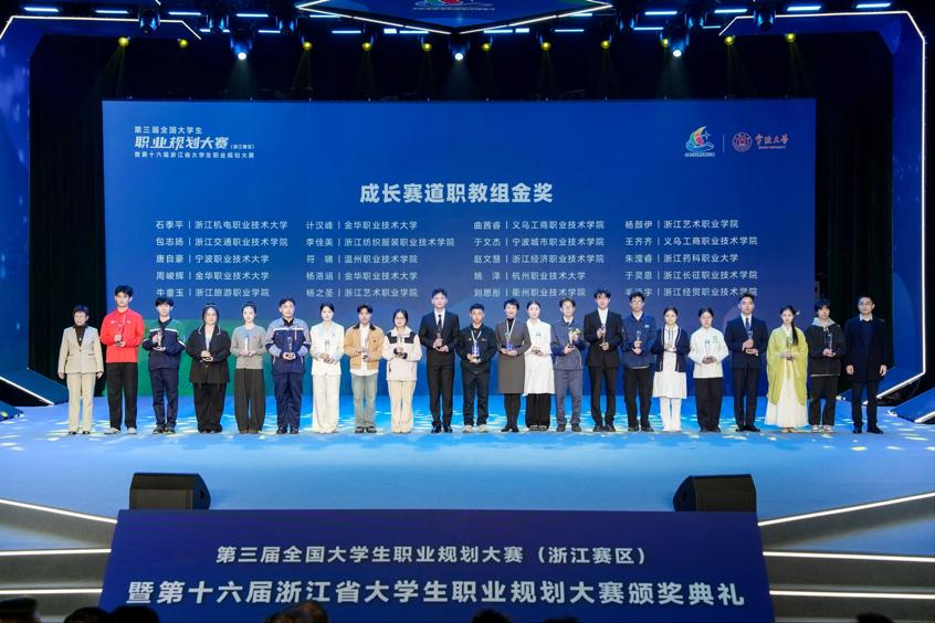 筑梦青春志在四方,规划启航“职”引未来。12月19日,由浙江省教育厅主办,浙江省教育发展中心和宁波大学共同承办的第十六届浙江省大学生职业规划大赛决赛在宁波大学圆满落下帷幕。我校选手在比赛中不畏强手、沉着应战,凭借扎实的基本功和出色的赛场表现勇夺佳绩!各赛道共斩获金奖1项,铜奖2项,优胜奖9项。