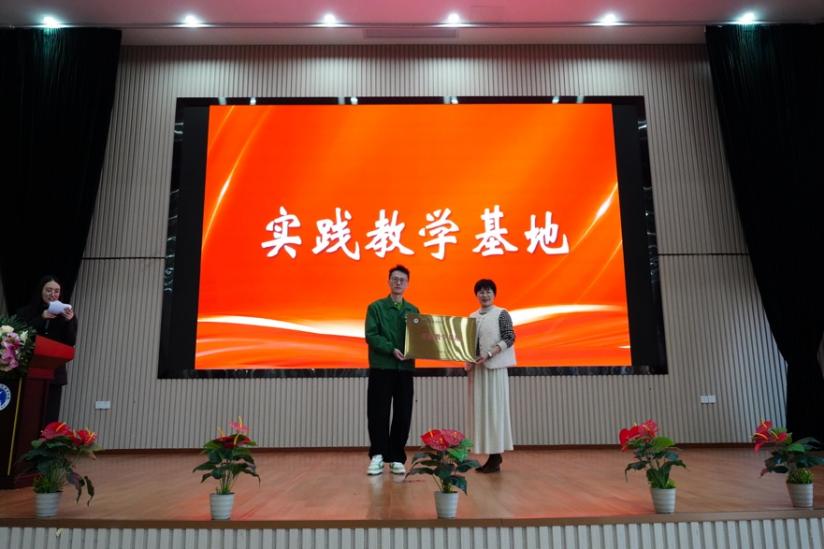 活动现场,校企双方举行了隆重的揭牌仪式与聘书颁发环节。葛玲妹与袁雨晨共同为“实践教学基地”“人才储备基地”揭牌,周妙怡与张浪浪共同为首个“师生驻园工作站”揭牌。葛玲妹为袁雨晨、周汝奕、张浪浪三位企业专家颁发“外聘讲师”聘书。