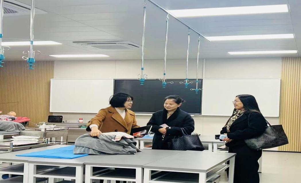 签约仪式上,应佳盈对王璇一行的到来表示热烈欢迎,并系统介绍了护理学院的发展历程、办学定位与特色优势。她表示,护理学院始终以“服务区域产业发展”为导向,在护理专业建设上,坚持“以实践促能力、以岗位定课程”的理念。随后,她重点介绍了学生实验实训场所。